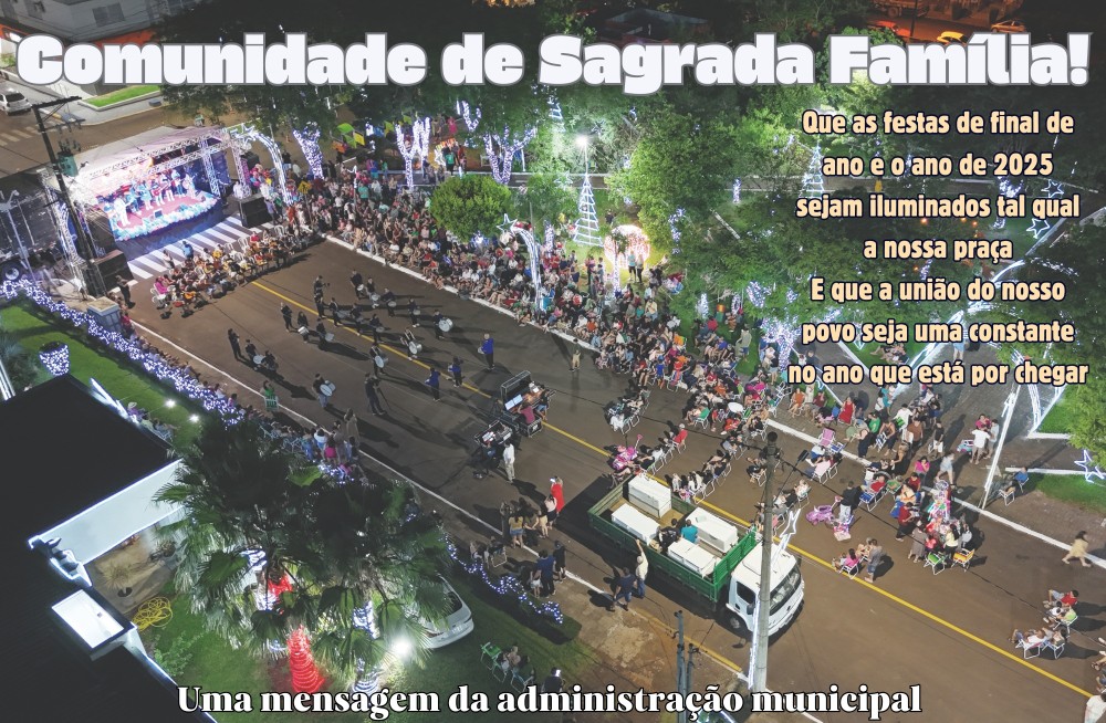 São os votos da Administração de Sagrada Família coordenados pelo prefeito Marcos do Nascimento e pelo vice-prefeito Sergio Pietrobelli.