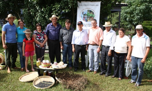 Aproximadamente 480 agricultores participaram de um importante Dia de Campo na última sexta-feira (20),nas propriedades das famílias Kuntz e Ninow, da comunidade Esquina Bonita, no município de Sagrada Família. Promovido pela Emater/RS-Ascar, prefeituras de Sagrada Família, Lajeado do Bugre e São Pedro das Missões, juntamente com suas respectivas Secretarias de Agricultura, o evento contou com a participação de diversas autoridades, dentre as quais, do Secretário de Desenvolvimento Rural, Pesca e Cooperativismo (SDR), Ivar Pavan, que ressaltou a importância da assistência técnica no meio rural. “Nossos técnicos da Emater estão de parabéns pelo brilhante trabalho que está sendo desenvolvido nesta região”. Segundo ele, boa parte da riqueza do Estado é oriunda da agricultura familiar e por isso se faz necessário pensar políticas que possibilitem o desenvolvimento do campo. O evento teve por objetivo, mostrar as alternativas e informações sobre bovinocultura de leite, o projeto de irrigação (programa piloto) e sucessão familiar na propriedade. Em seu pronunciamento, O prefeito em exercício do município de Sagrada Família, Sidiclei Miotto, agradeceu a participação das autoridades que prestigiaram o evento e, especialmente, aos agricultores que em grande número participaram do dia de campo. “O evento aqui ocorrido é histórico, pois pela primeira vez conseguimos reunir tantas autoridades num único ato, através do qual, tivemos a oportunidade de desenvolver, um projeto piloto do Governo do Estado na área de irrigação” disse. Após visitar todas as estações, o Secretário Ivar Pavan deu a partida no motor instalado junto ao primeiro açude do programa estadual de irrigação e, ao lado de dezenas de autoridades e agricultores, ele observou o funcionamento do sistema experimental ali instalado. “Nossa Secretaria é responsável por pequenas obras, mas tudo o que estamos fazendo chega até a propriedade do nosso agricultor”, disse. Pavan informou ainda, que esta é apenas a primeira etapa de um programa que deverá, nos próximos meses, se estender para outros municípios. “Nossa previsão é implantar, até o final do mês de junho, 160 projetos de irrigação iguais a este em toda a região”. Somente nomunicípio de Sagrada Família serão construídos, inicialmente, 10 açudes para o programa de irrigação, totalizando um investimento de R$ 69.009,00, sendo 80% deste valor subsidiado pelo Governo do Estado e o restante, ficará por conta do beneficiário e da Prefeitura Municipal.