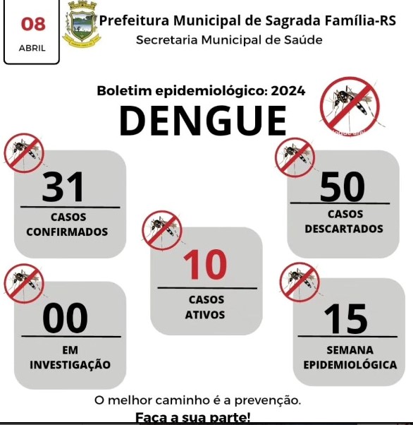 A Secretaria de Saúde, por intermédio de seu departamento de Vigilância e Saúde Pública, gostaria de compartilhar os números mais recentes sobre a situação da Dengue em nossa cidade.